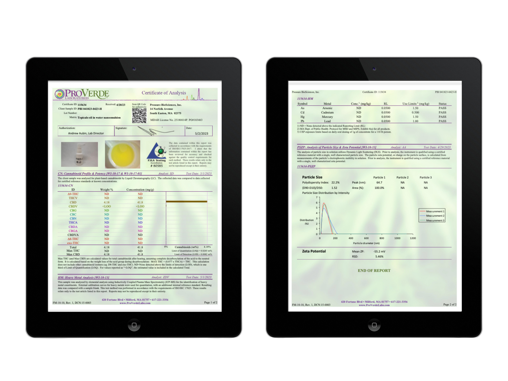 This revolutionary product is the result of an exclusive partnership with Pressure BioSciences, Inc. (PBIO), a pioneer in the application of patented UltraShearâ„¢ technology. This unique, pressure-based platform is specifically designed to nanoemulsify CBD oil, a process that results in nano-sized droplets that are more easily absorbed by the body. in pain relief.